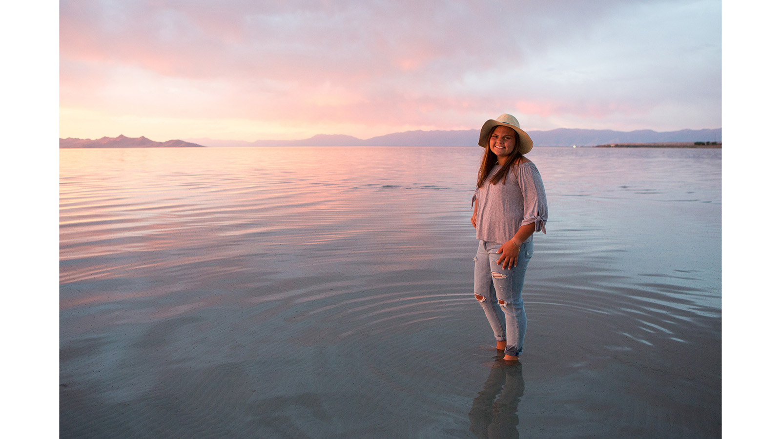 Utah senior portrait photographer, great salt lake, sunset
